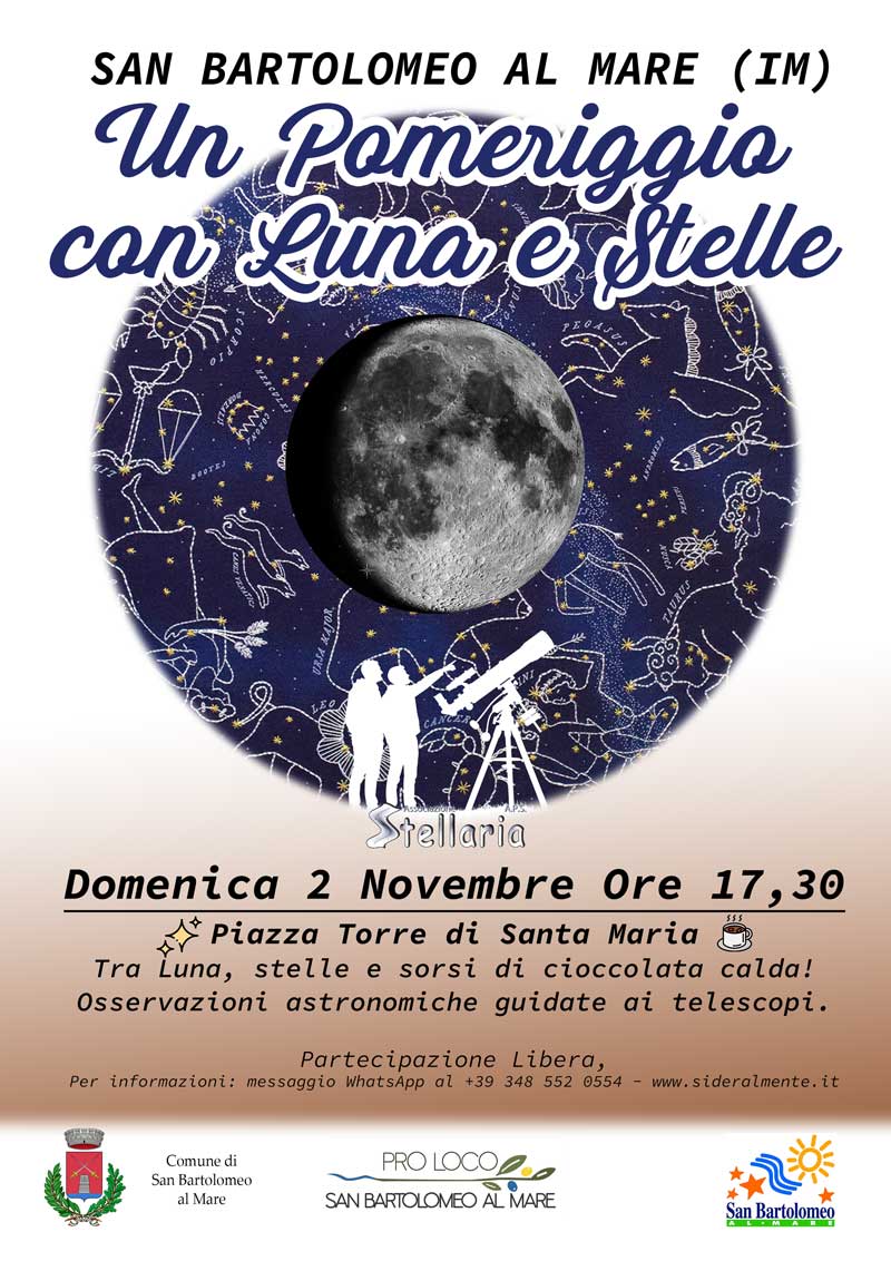 Ore 17:30 - Tra stelle, Luna e sorsi di cioccolata calda. Osservazioni guidate del cielo ai telescopi da Piazza Torre di S.Maria. Partecipazione libera (l'evento non si svolgerà in caso di meteo non favorevole)